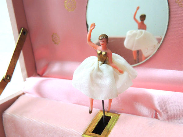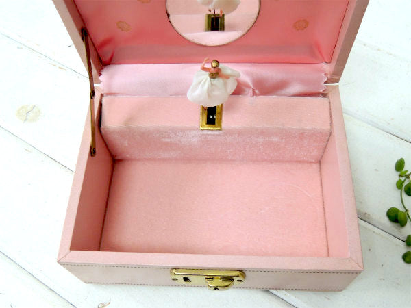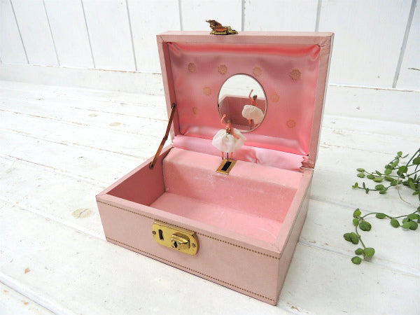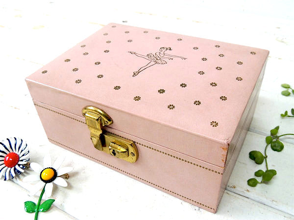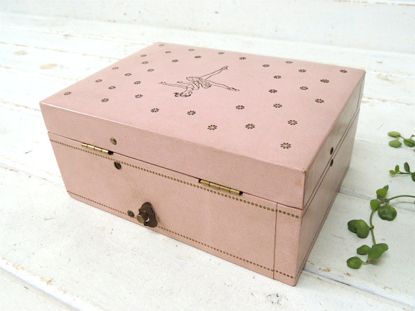 アメリカ西海岸・サクラメントで見つけました・・回転バレリーナ&オルゴール付きのピンク色・アンティーク・ジュエリーボックス(鍵付き)です。