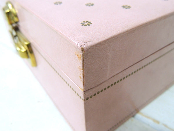 フタ内側にオーバル形の小さなミラーが付いており、内張りもピンク色のサテン&ベルベット素材になります。