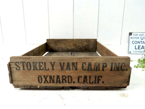 アメリカで見つけました・・インディアナポリスで1861年に誕生した歴史ある食品会社『STOLELY VAN CAMP INC』のアンティーク・ウッドボックスです。