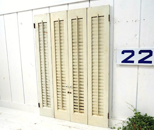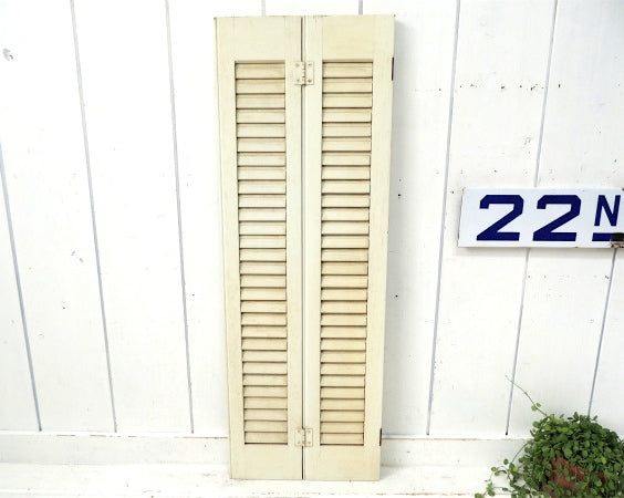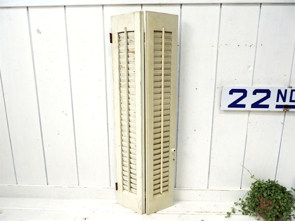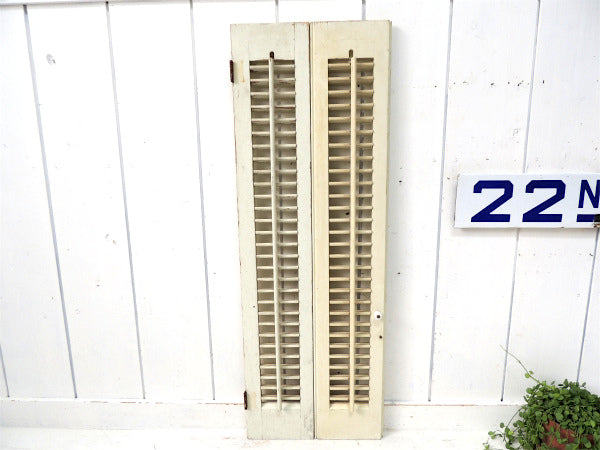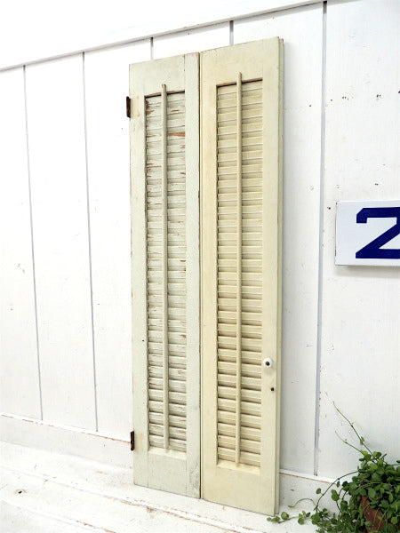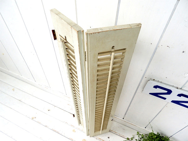 アイボリー・シャビーな木製・アンティーク・ウッドシャッター ルーバー ヴォレー 建具 USA