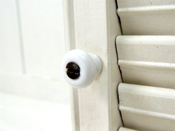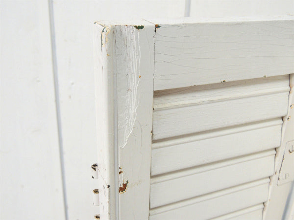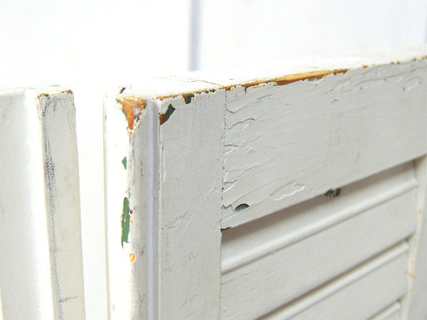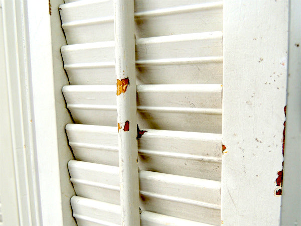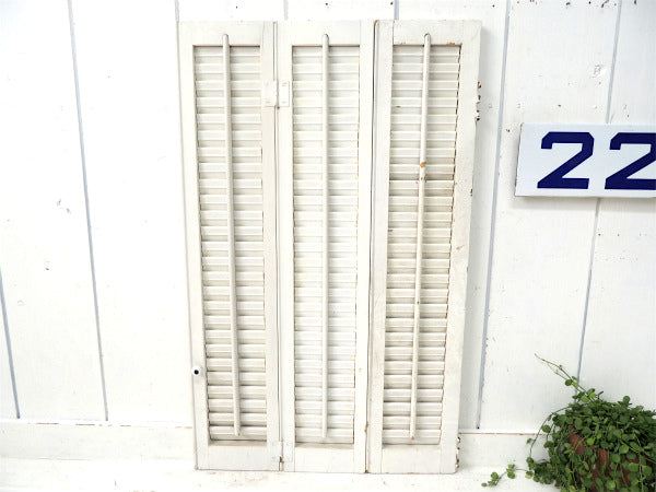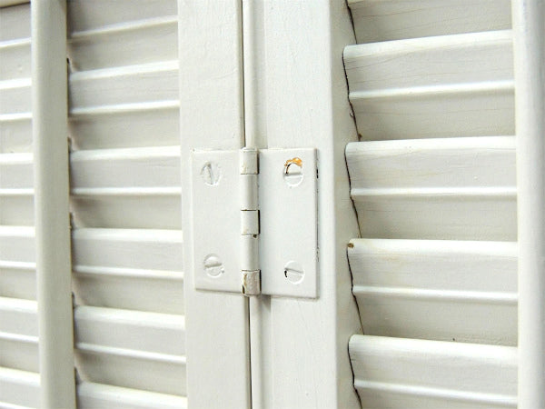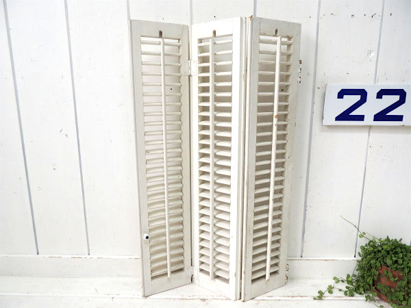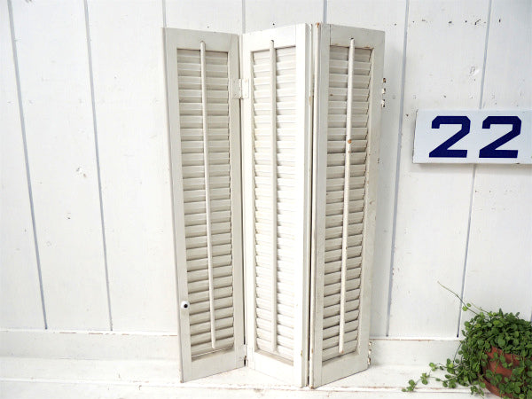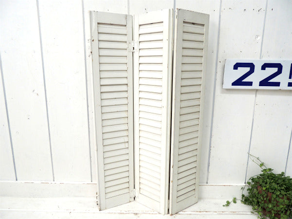 ホワイト・シャビーな木製・アンティーク・3連 ウッドシャッター・ルーバー・ヴォレー・建具 USA