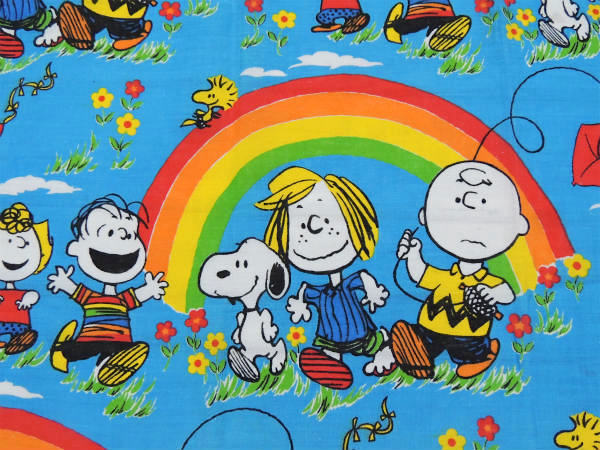 【スヌーピー】ピーナッツの仲間・レインボー柄・60'sヴィンテージ・カーテン/生地 USA
