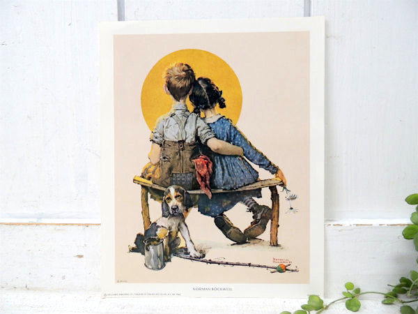 アメリカ西海岸・サンフランシスコで見つけました・・アメリカを代表する偉大な画家『ノーマンロックウェル(Norman Rockwell)』"Little Spooners" or "Sunset" サンセット・1972のヴィンテージ・ポスター(壁飾り用)です。