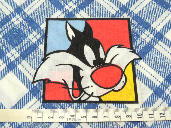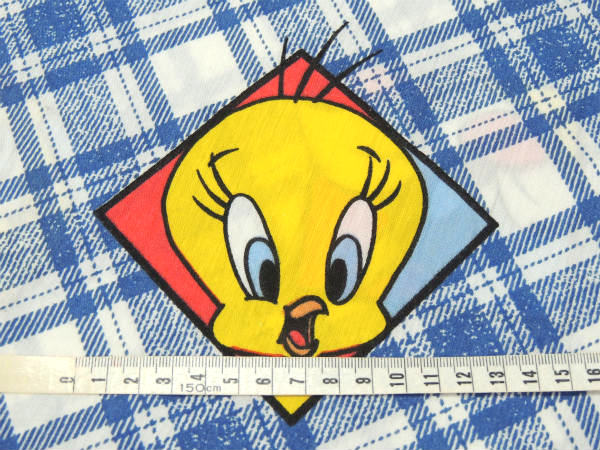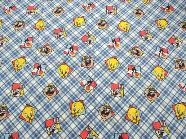 【ルーニーテューンズ】トゥイーティーetc・斜めチェック×パネル柄・ユーズドシーツ(フラットシーツ)
