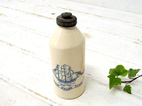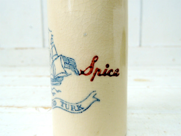 アメリカ西海岸・アラメダで見つけました・・『Old Spice(オールドスパイス)』の陶器製・アンティーク・ボトル瓶・メンズ・TALCUMです。