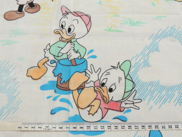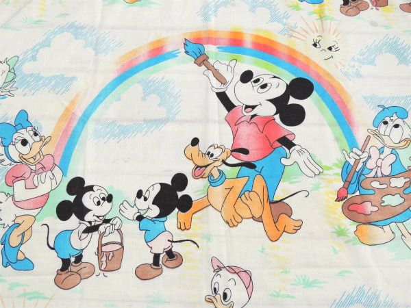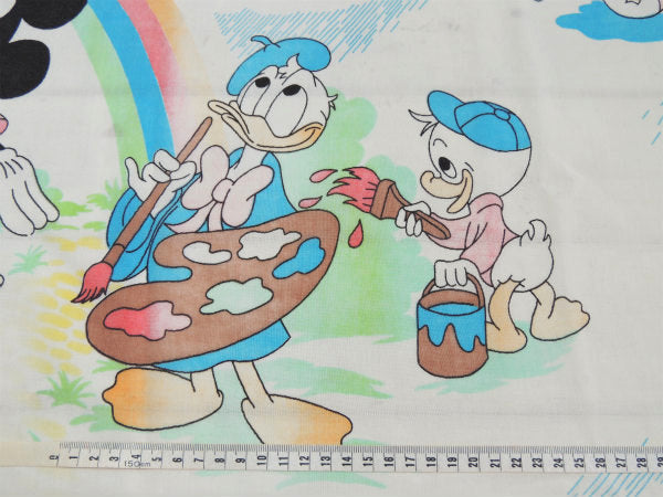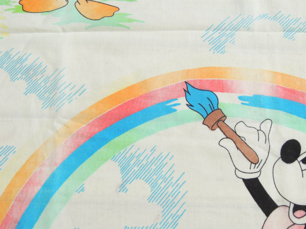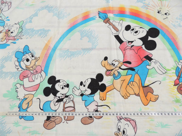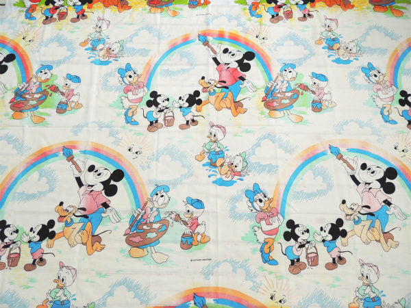 【ミッキー&フレンズ】ディズニー・レインボー柄・ヴィンテージ・カーテン/生地/ハーフシーツ