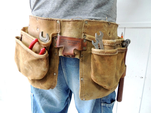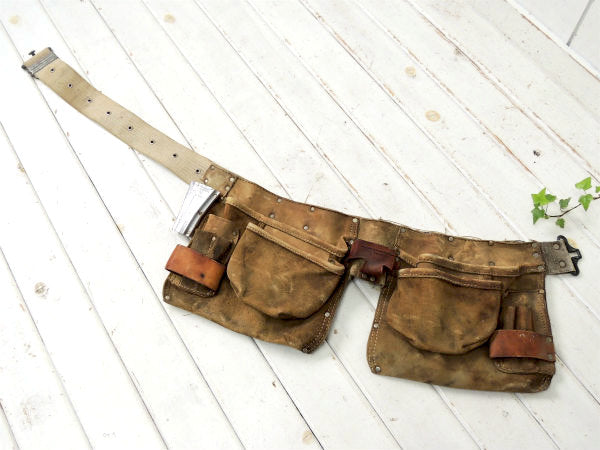 アメリカ西海岸・ロサンゼルスで見つけました・・レザー製の10ポケット・ヴィンテージ・カーペンターエプロン(ツールエプロン)です。