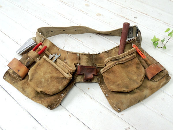 スエード製・10ポケット・ヴィンテージ・カーペンターエプロン/ツールエプロン/工具エプロン USA