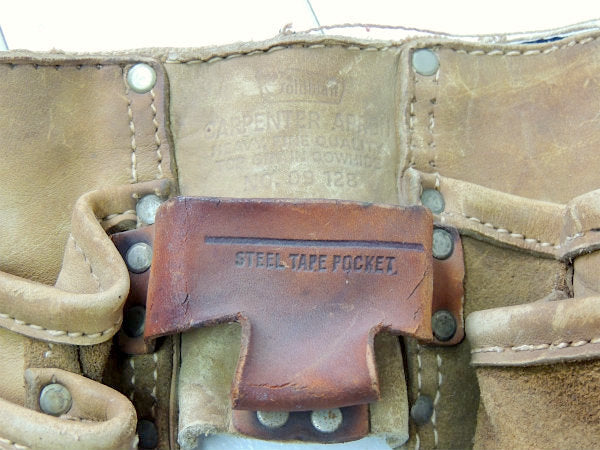 【CARPENTER APRON HEAVY, FINE, QUALITY, TOP GRAIN COWHIDE NO.09128】の型押しサインが入っております。
