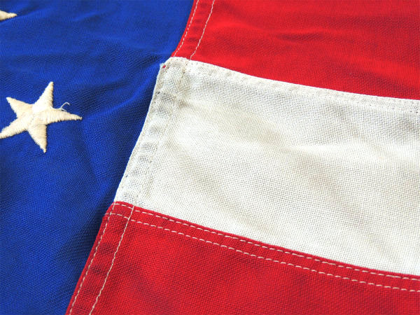 アメリカ西海岸・サクラメントで見つけました・・分厚いコットン製・大きなヴィンテージ・星条旗(アメリカンフラッグ)★は刺繍です。
