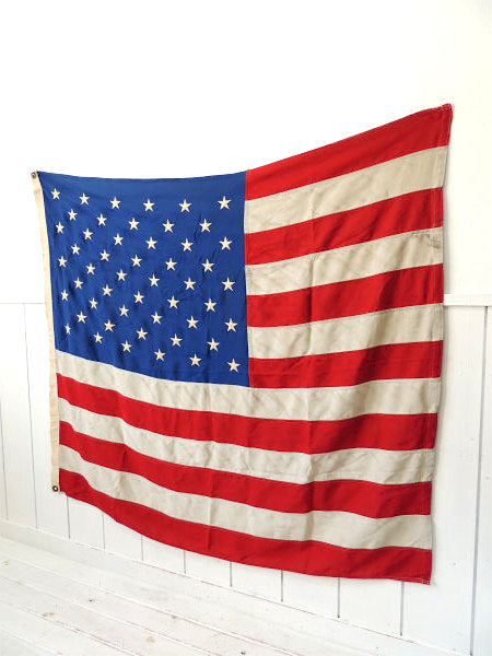 【1960s〜刺繍・50★】ビッグサイズ!ヴィンテージ・アメリカンフラッグ・看板・USA
