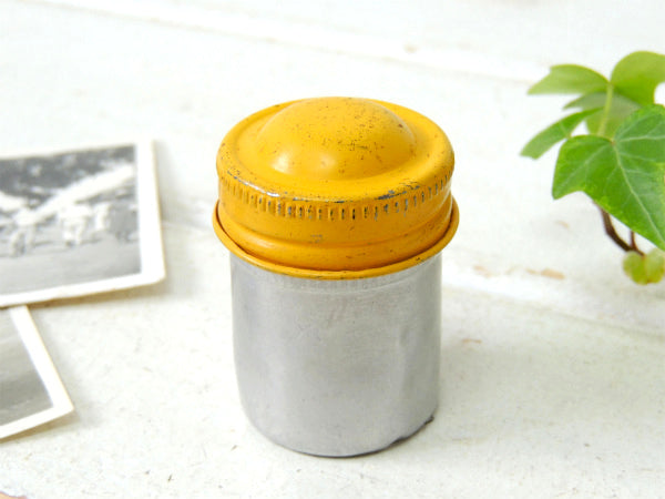 【黄色・イエロー】カメラ用の小さなヴィンテージ・アルミ製・フィルムケース/USA