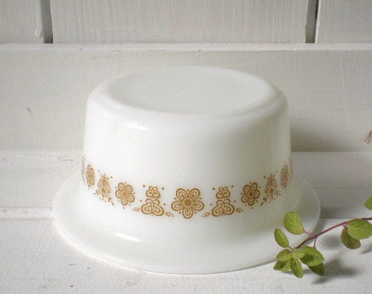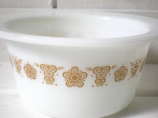 PYREX バタフライゴールド バタージャー パイレックス USA ミルクガラス