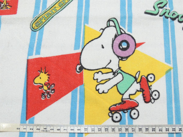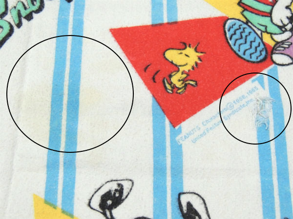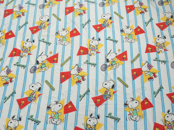 【スヌーピー】スポーツ柄・フランネル素材・60'sヴィンテージ・USEDフラットシーツ(1/2)