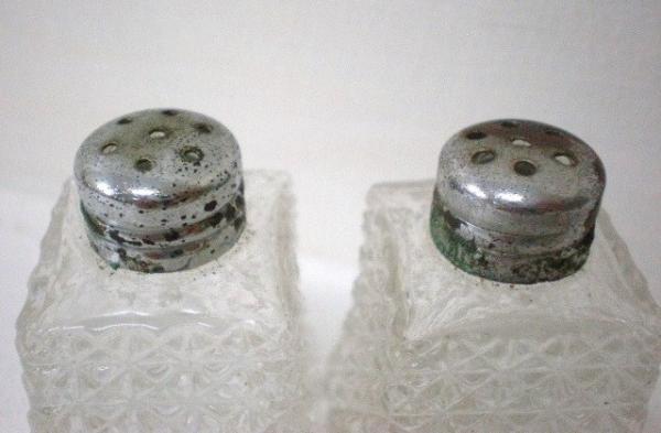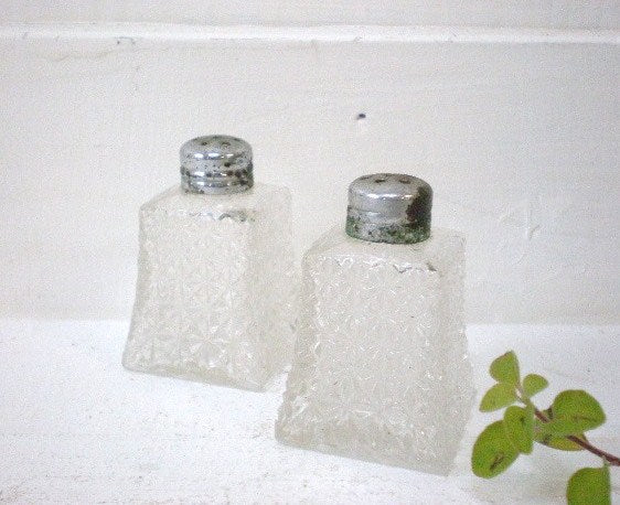 カリフォルニアでみつけました・・『OCCUPIED JAPAN(オキュパイド・ジャパン』のガラス製の小さなアンティーク・ソルト&ペッパーシェーカーです。
