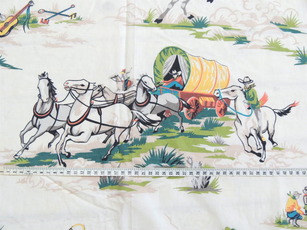 アイボリー色ベースに、馬&カウボーイ&サボテンなどのウエスタン柄プリントです。