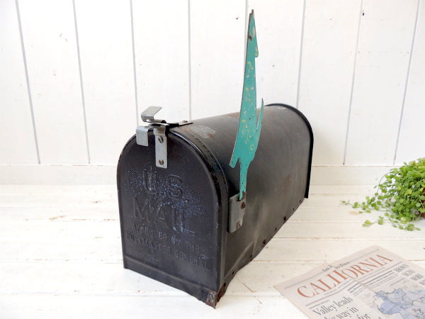 アメリカで見つけました・・ビッグサイズの黒色スチール製『U.S MAIL』ヴィンテージ・メールボックス(郵便受け/ポスト)です。
