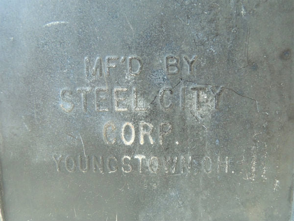 取っ手下に【U.S MAIL APPROVED BY THE POSTMASTER GENERAL】、背面に【MF'D BY STEEL CITY CORP. YOUNGSTOWN, OH.】とエンボス文字が入っております。