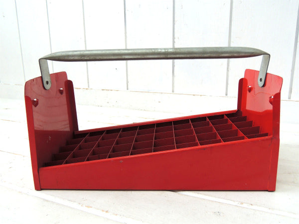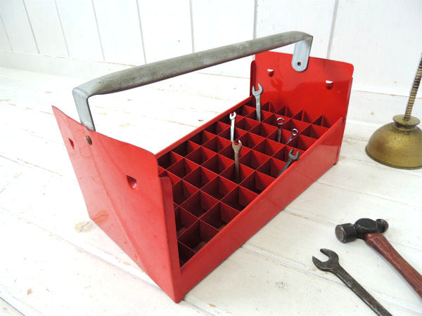 【工業系・レッド・メタル製】仕切り付き・ヴィンテージ・ツールボックス・キャリーボックス・工具ケース