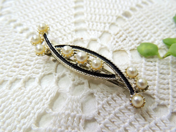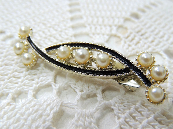 パール調・ヴィンテージ・ヘアクリップ/コスチュームジュエリー/アクセサリー USA