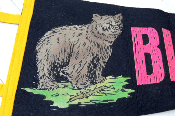 アメリカ・カリフォルニア州『BIG BEAR LAKE,Calif(ビッグベアーレイク)カリフォルニア』の大きなヴィンテージ・ペナントです。 三角形の旗で、左サイドにヒモが付いております。 ブラックベースにクマの絵柄、【BIG BEAR LAKE calif】の文字が入っています。 お部屋の壁飾りやディスプレイ・・コレクションなどに・・♪ 経年による多少のスリキズ・ホコリ等ございますが、目立ったダメージはございません。 画像(写真)でのご判断を宜しくお願い致します。 ■SIZE :約 W65.3(74.3)cm×H22.0cm   ■コンディション : ★★★★☆ ■折り畳んでの発送でよろしければ、レターパックライト¥360対応可(追跡サービスあり・補償なし) ※ご注文の際、お手数ですがメッセージ欄に『レターパックライト希望』とご記入下さい。新たにお見積もりをメールにてお知らせさせていただきます。