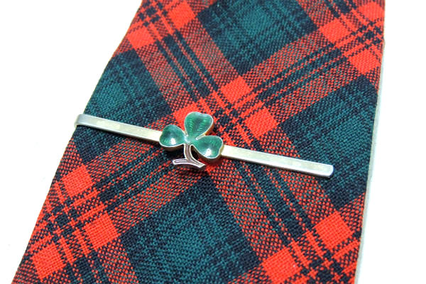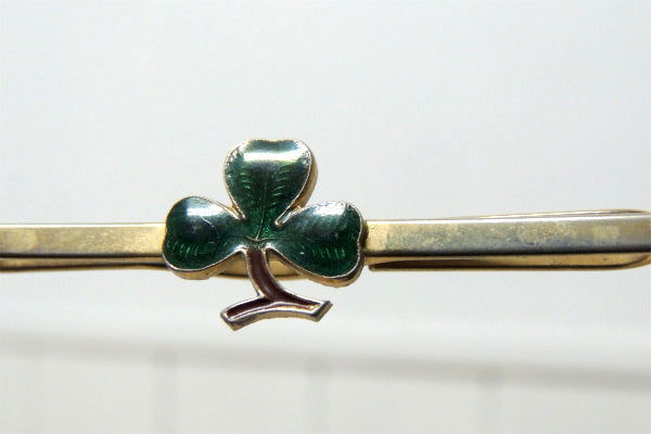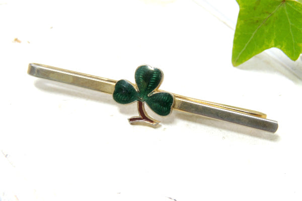 【クローバー・モチーフ・三つ葉】お洒落なヴィンテージ・タイピン・タイクリップ・グリーン×ゴールド
