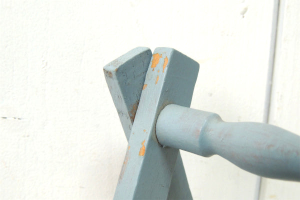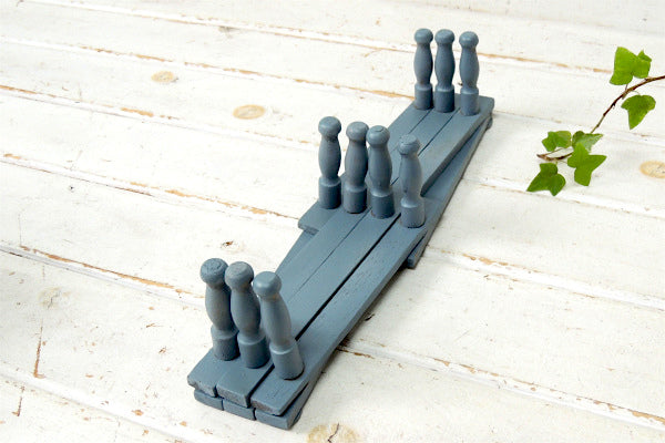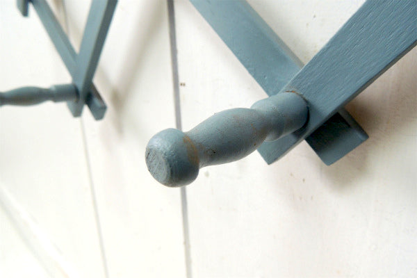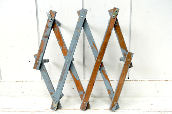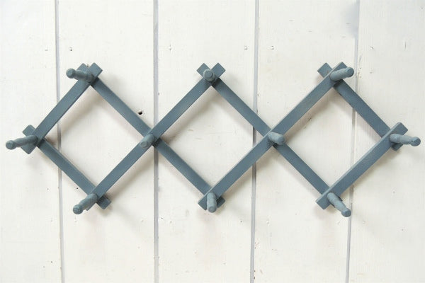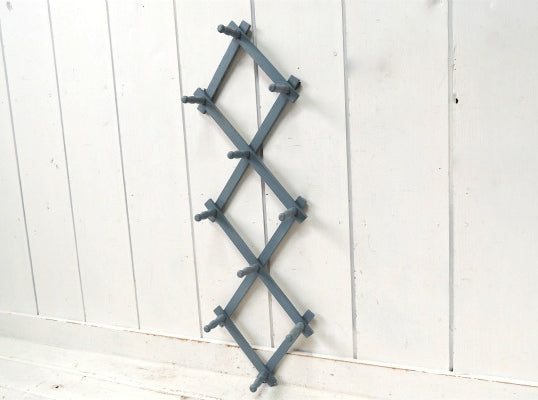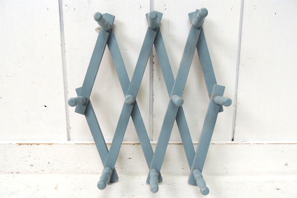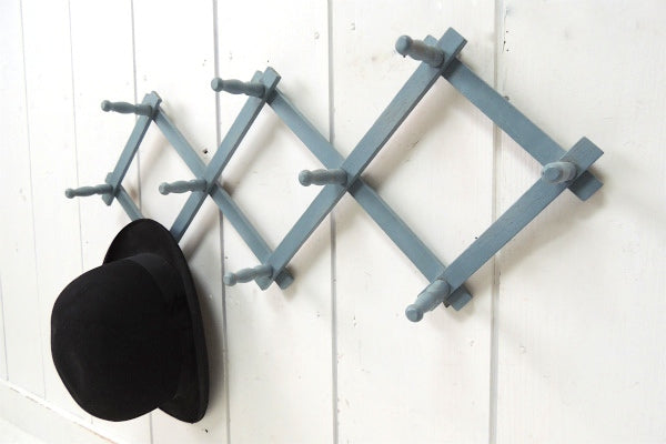 【水色グレー】木製・ジャバラ式・壁掛けヴィンテージ・ハットラック/コートフック USA