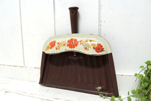 【J.V.REED】花柄・フォークアート・ティン製・アンティーク・ダストパン/ちりとり USA