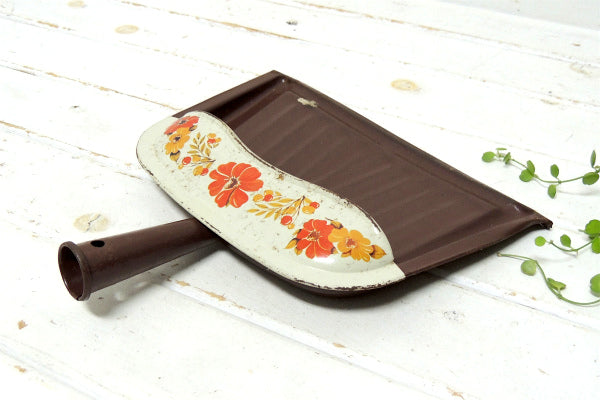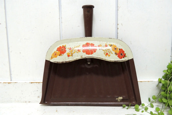 アメリカ南部・テキサス州でみつけました・・ティン製の花柄アンティーク・ダストパン(ちりとり)です。