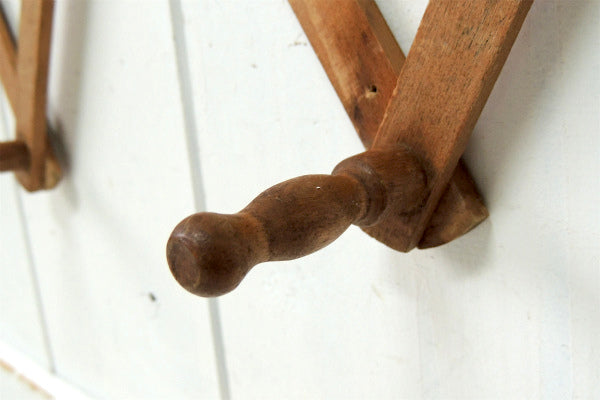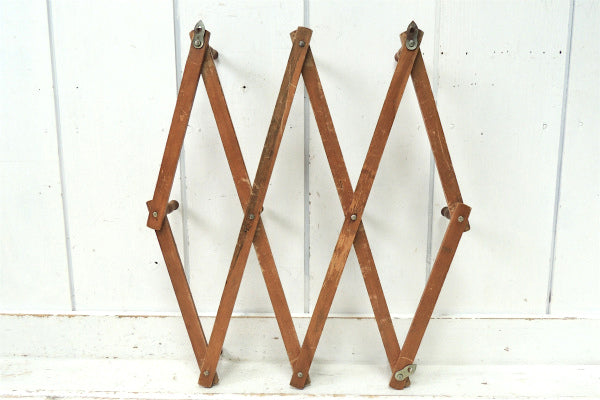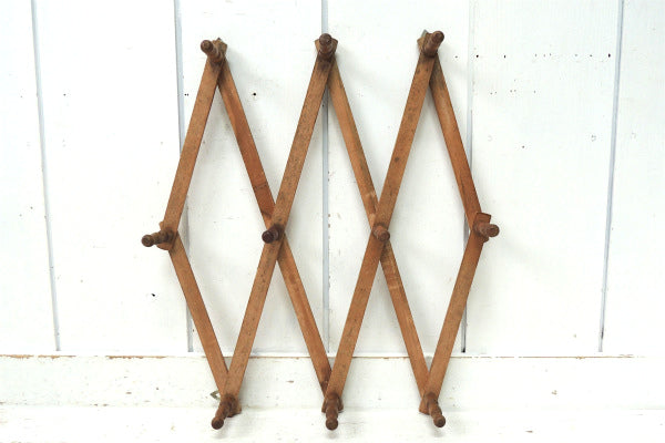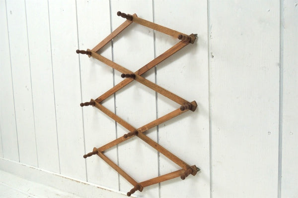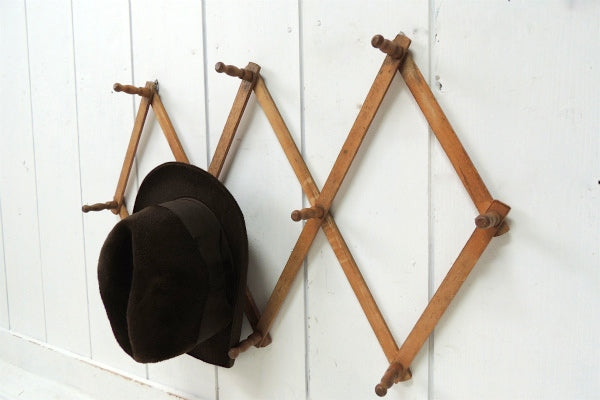 時を重ねた古い木製のジャバラ式・アンティーク・ハットラック/コートフック USA