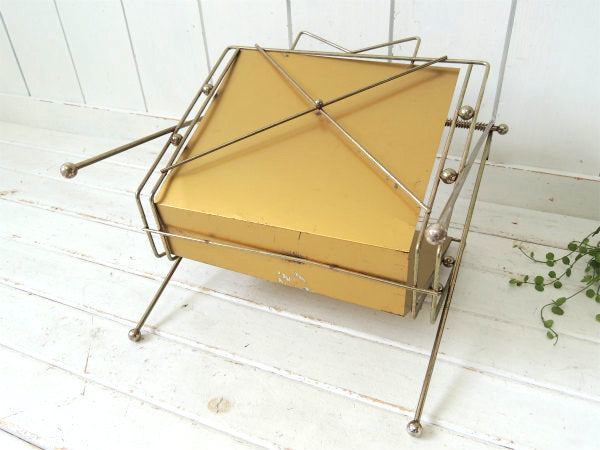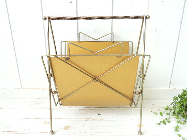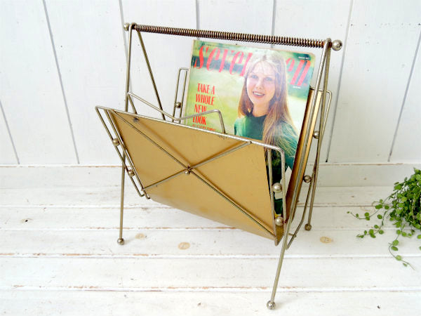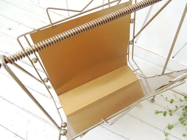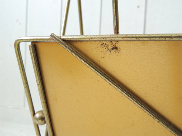 ミッドセンチュリー・ゴールドトーン・メタル製・ヴィンテージ・マガジンラック マガジンスタンド USA