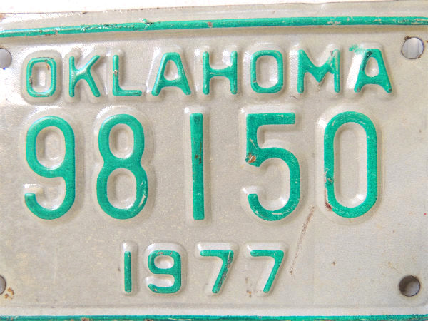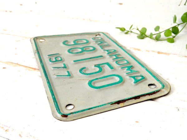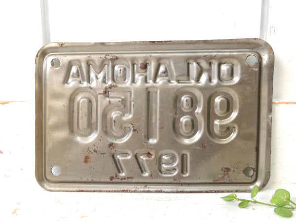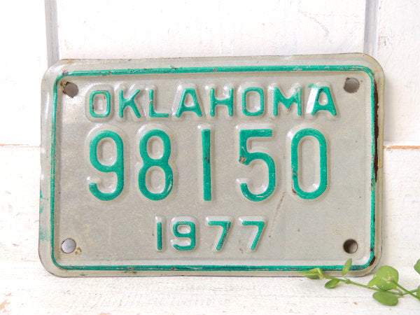 1977年・アメリカ・オクラホマ州"OKLAHOMA・98150" ヴィンテージ・ナンバープレート(オートバイ&バイク ライセンスプレート)です。