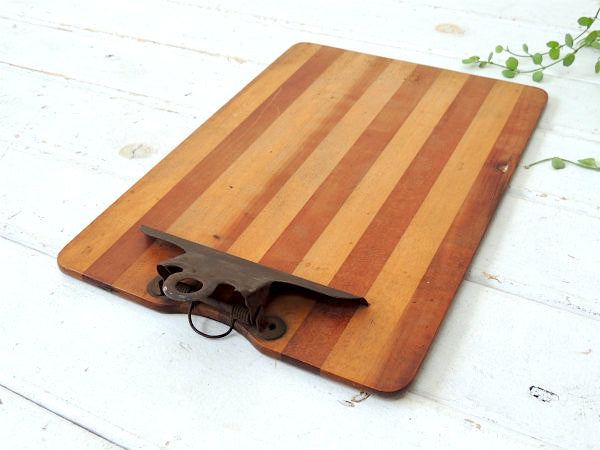 ストライプ・デザインの木製ボードに、クリップ部分もしっかりとしたアイアン製になっております。