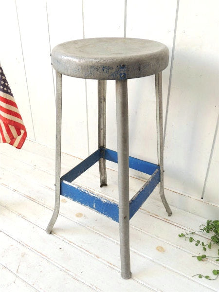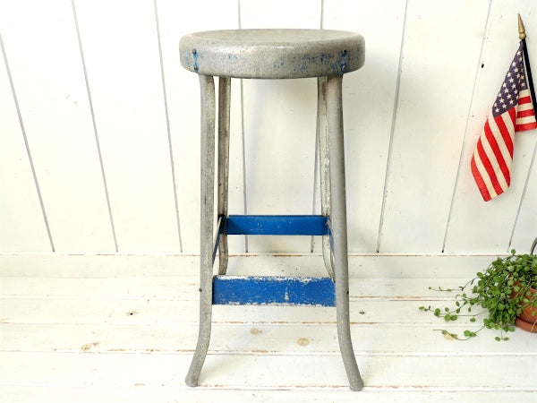 インダストリアル アルミ製・ヴィンテージ・ラウンドスツール・チェア・ガレージスツール・USA