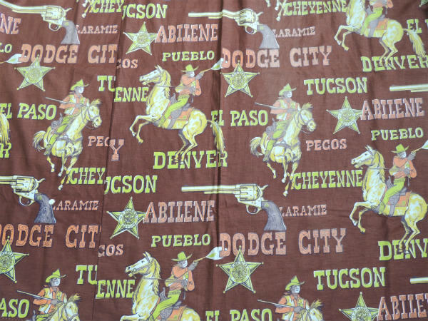 馬などの絵柄、【EL PASO】【DODGE CITY】【ABILENE】【DENVER】【TUCSON】【CHEYENNE】【LARAMIE】【PUEBLO】などの地名のプリントです。