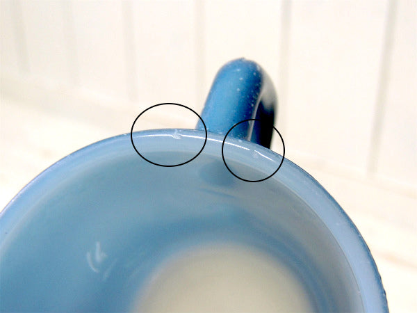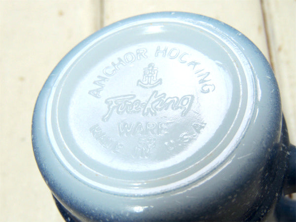 アメリカ南部・テキサス州郊外で見つけました・・『ファイヤーキング』のブルーグラニット・ミルクガラス製・ヴィンテージ・スタッキング・マグカップです。