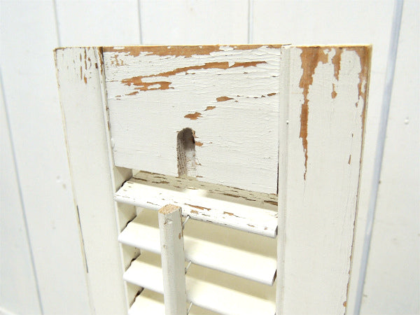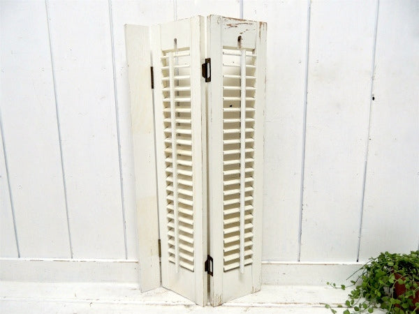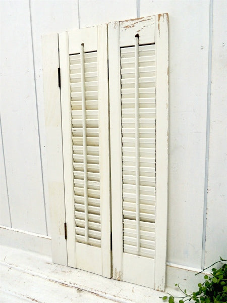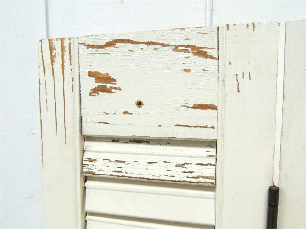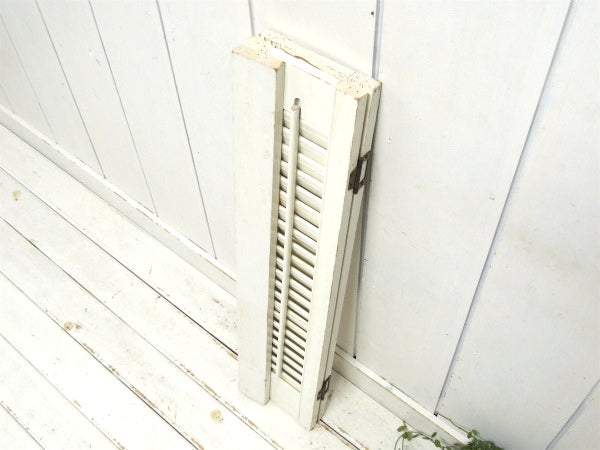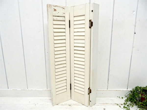 オフホワイト×木製 シャビーなヴィンテージ・ウッドシャッター・ルーバー・ヴォレー・建具 USA