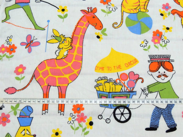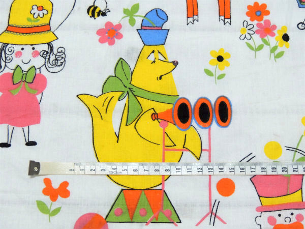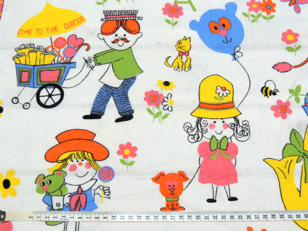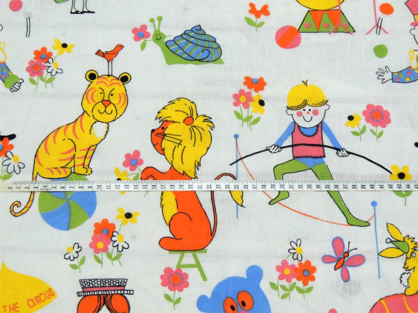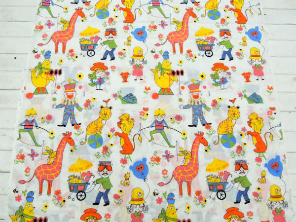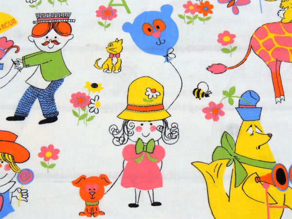 カラフル&キュートなサーカス柄・デッドストック・ヴィンテージ・ファブリック/生地/テキスタイル