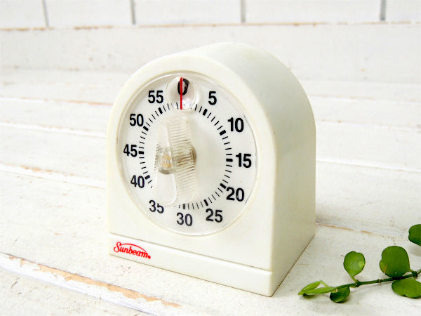 【Sunbeam】ホワイト・プラスティック製・ヴィンテージ・キッチンタイマー/タイマー USA