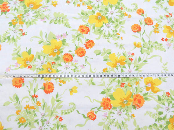アメリカ西海岸カリフォルニア州で見つけました・・アメリカの老舗・大型デパート『JC.Penny(ジェーシーペニー)』の花柄&リーフ柄・ヴィンテージUSEDフラットシーツです。(ツインサイズ)