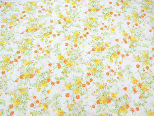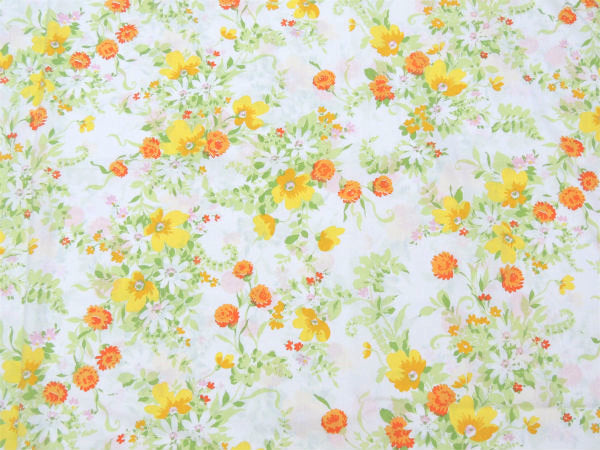ホワイトベースに、黄色や白・オレンジ色のやさしい花柄プリントです。