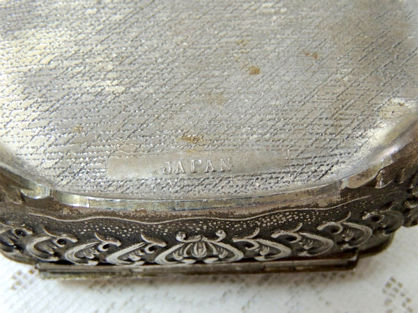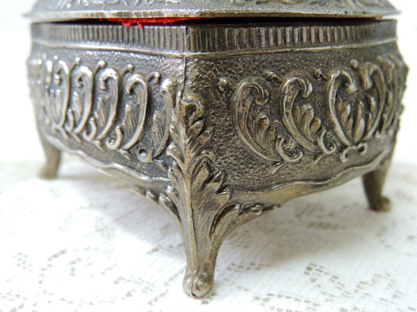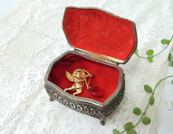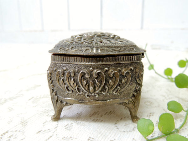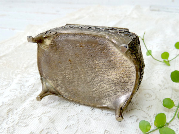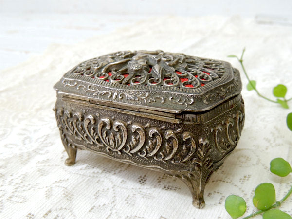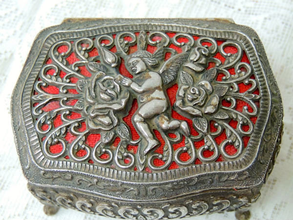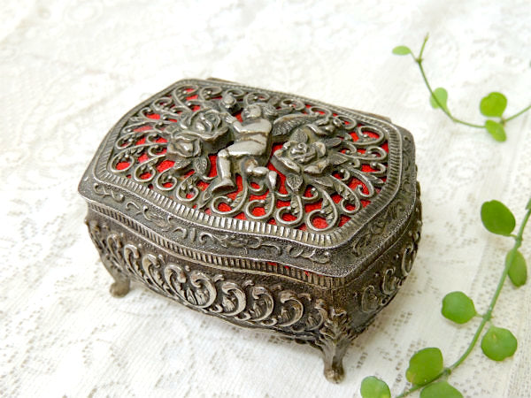 アメリカ中南部・オクラホマ州郊外で見つけました・・天使&薔薇デザインのピューター製・猫脚・アンティーク・ジュエリーボックスです。