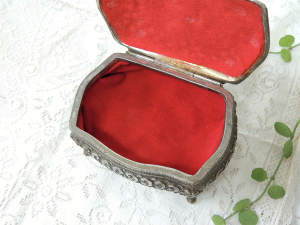 【エンジェル&薔薇】ピューター製・猫脚・アンティーク・ジュエリーケース/宝石箱/里帰り品