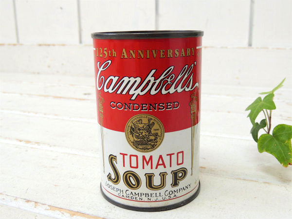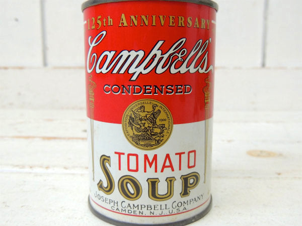 両面上部に【125th ANNIVERSARY】と125周年を記念するゴールド色文字、【Campbell's CONDENSED TOMATO SOUP JOSEPH CAMPBELL COMPANY CAMDEN. N.J., U.S.A.】とございます。