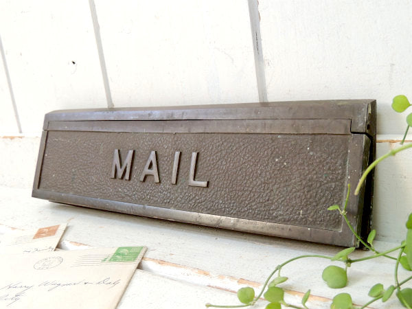 ドアに取り付けるタイプの特大サイズ郵便受けでずっしりと重みがあり、【MAIL】のエンボス文字が入っております。