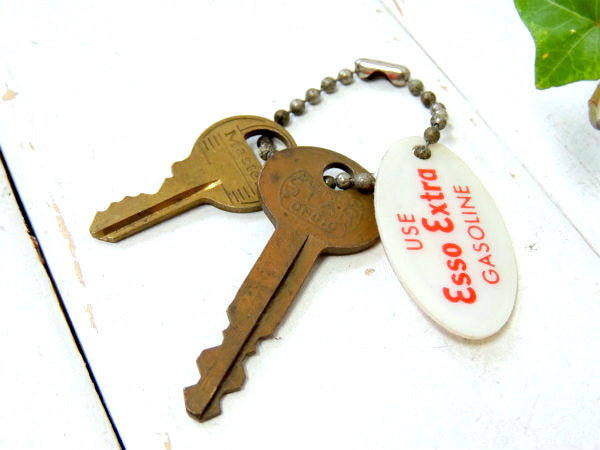 エッソ・ESSO・ガソリン アドバタイジング・ビンテージ・キーホルダー・真鍮製・鍵2本付き