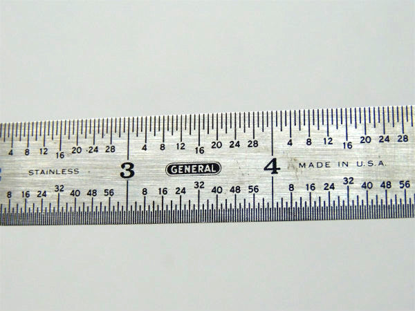 アメリカ西海岸・カリフォルニアで見つけました・・6inch Tempered Steel Stiff Rule『GENERAL』のステンレス製・ヴィンテージ・定規・ルーラー(DECIMAL EQUIVALENTS/十進法)です。