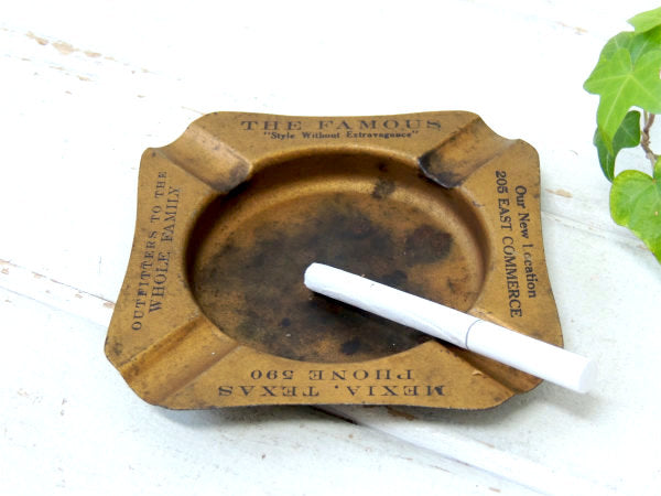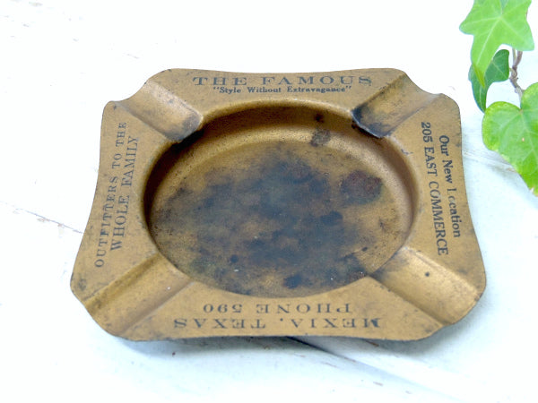 アメリカ南部・テキサス州で見つけました・・ゴールド×ブラックカラーOUTFITTERS TO THE WHOLE FAMILY・ティン製・アドバタイジング・ヴィンテージ・灰皿(アシュトレイ)です。