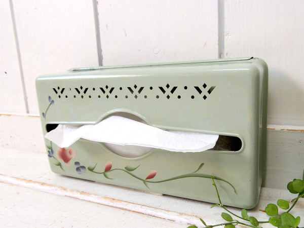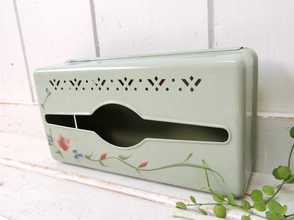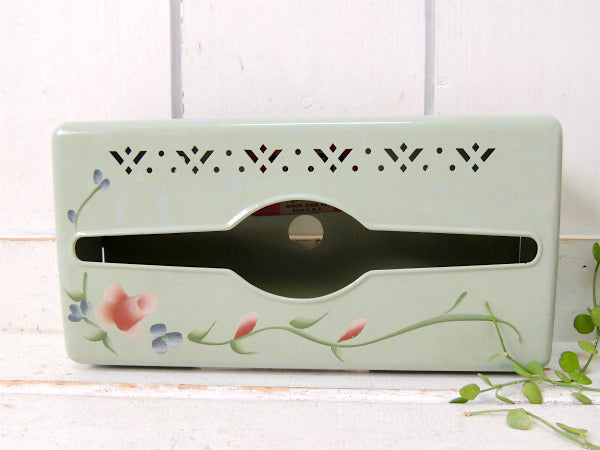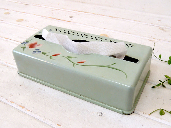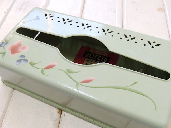 【DETECTO】花柄・トールペイント・ミントグリーン色・ヴィンテージ・ティッシュケース USA