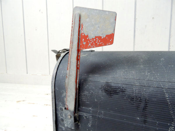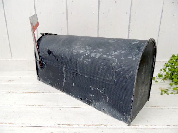 アメリカでは,よく見かけるポピュラーな郵便受けで、サイドの赤い旗(ティン製)を立てておくと、郵便屋さんが配達時に内側の郵便物を持って行ってくれるという、優れたシステムです。